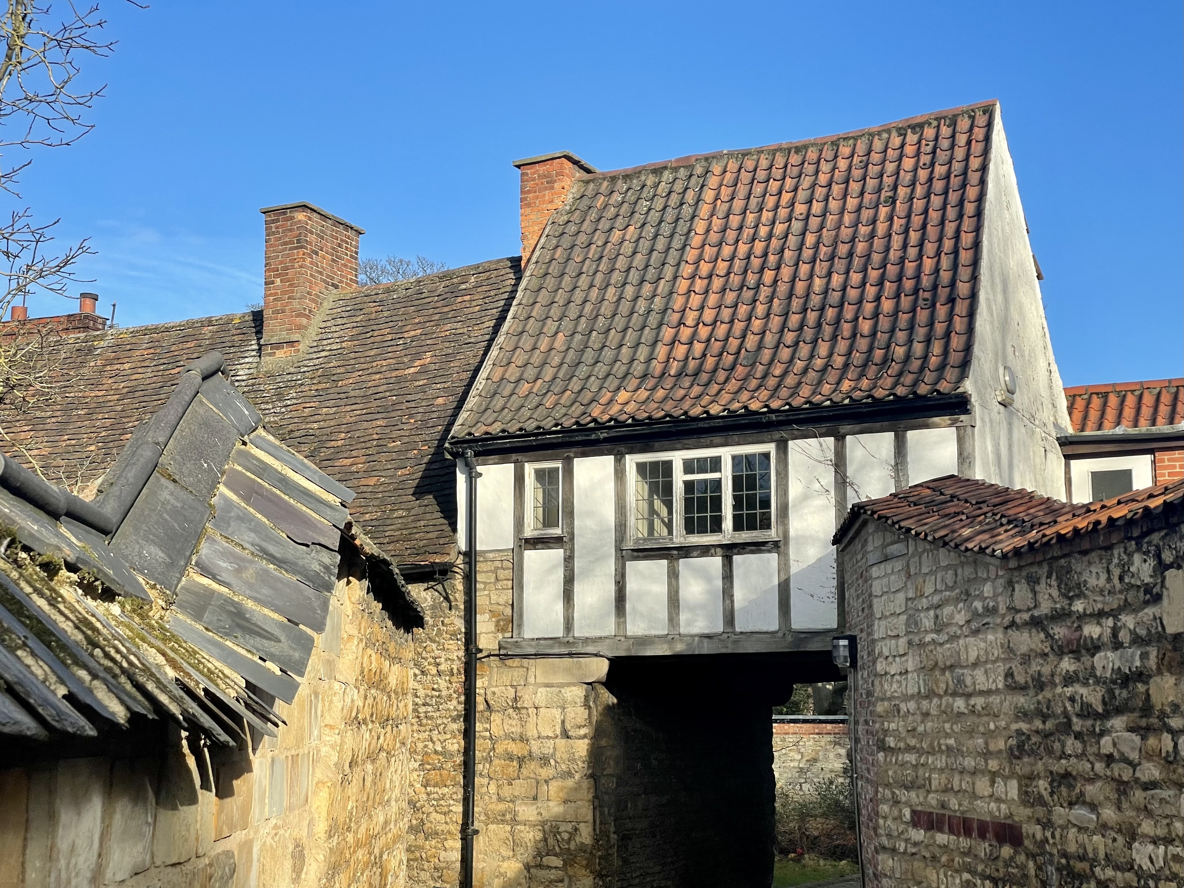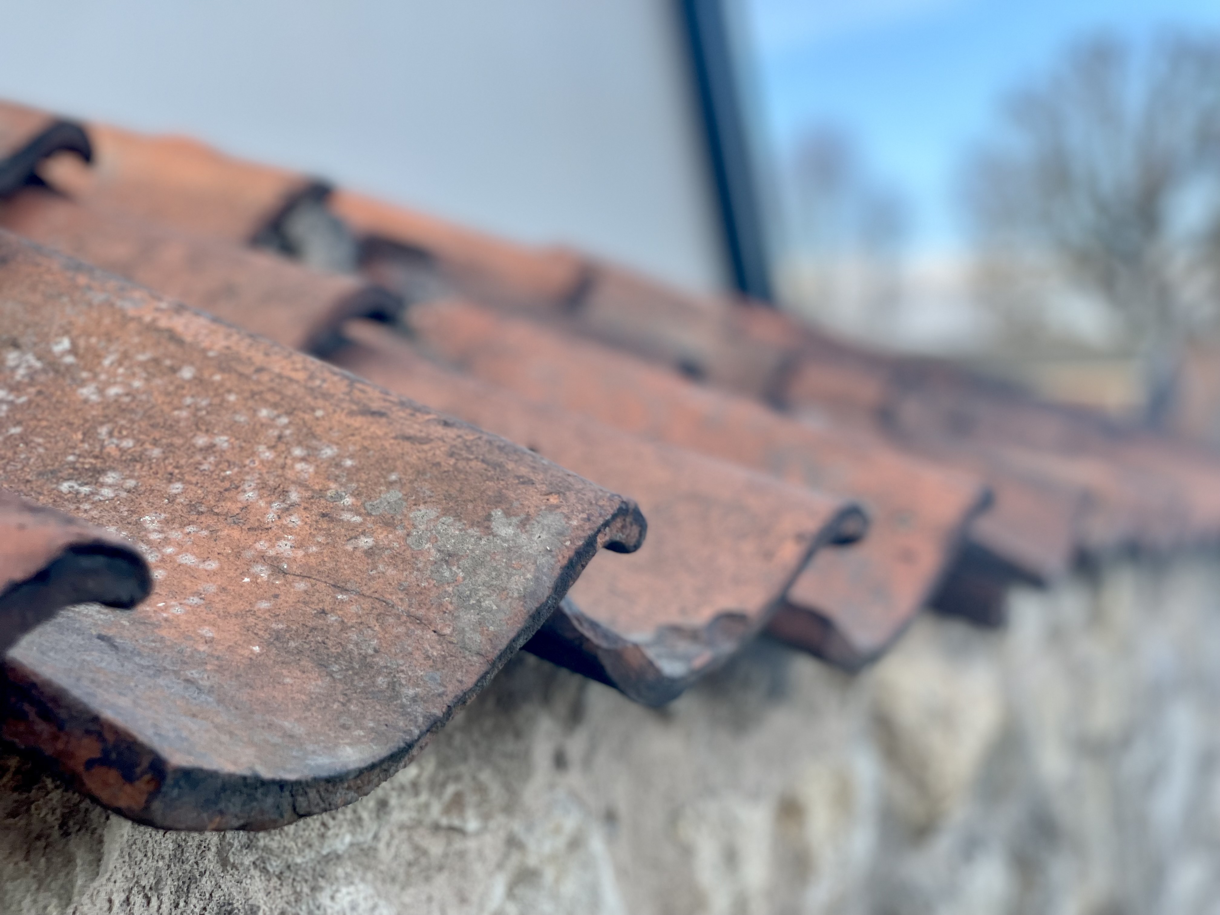 My lens tucks into the curve of the street and rests on a stud and timber gatehouse. The walls are topped by slate and pantile. Pantiles are my favourite roofing material. Their form is a kind of sculptural onomatopoeia: egressing along the rivuleted tiles run the rivulets of rain.