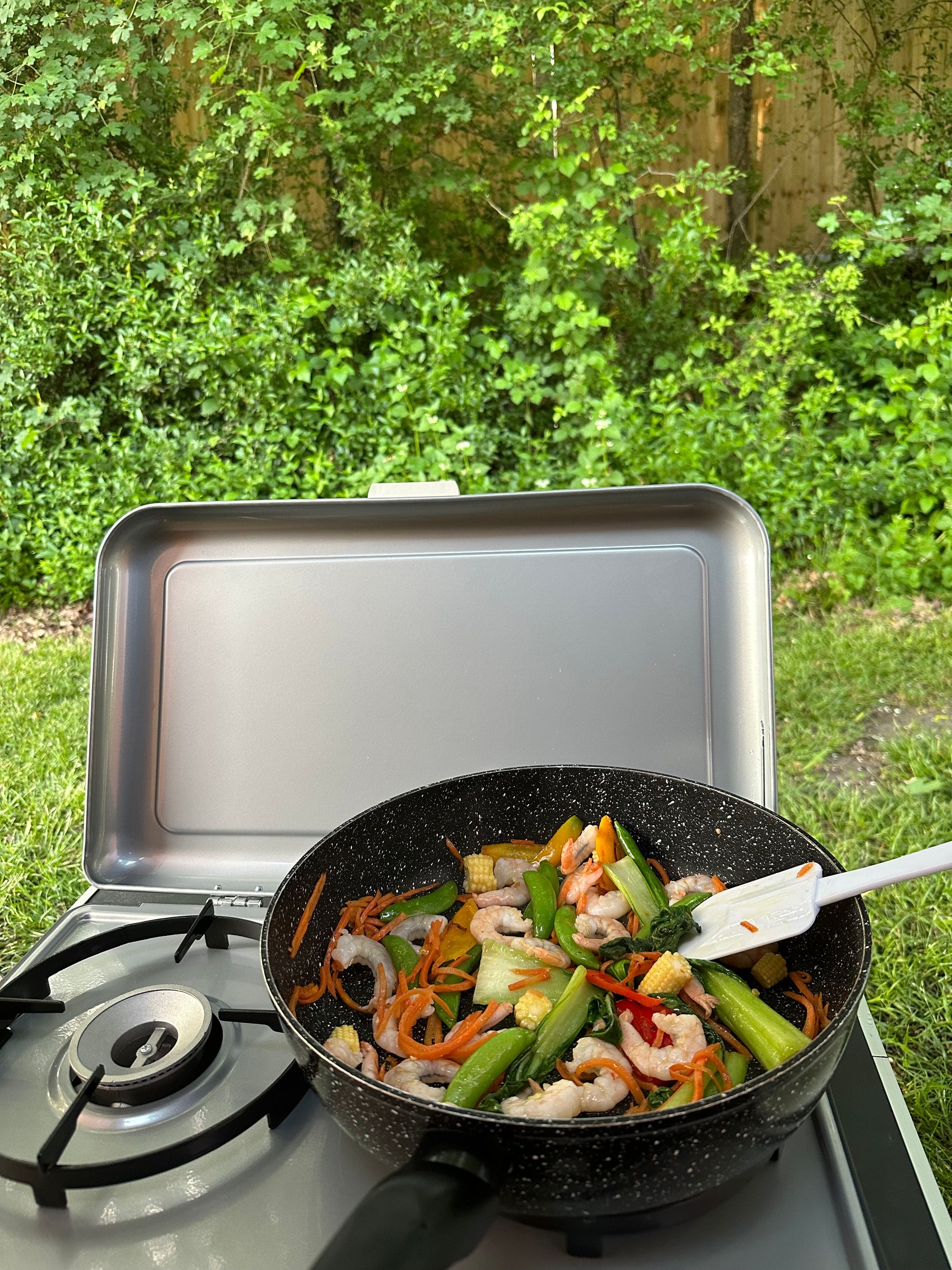 These are days of outdoor cooking - mainly stir-fry's and wraps.