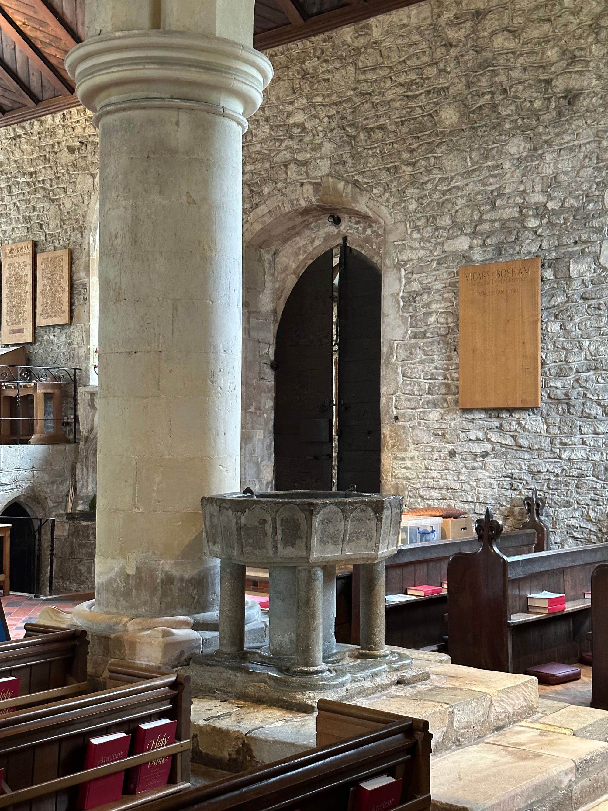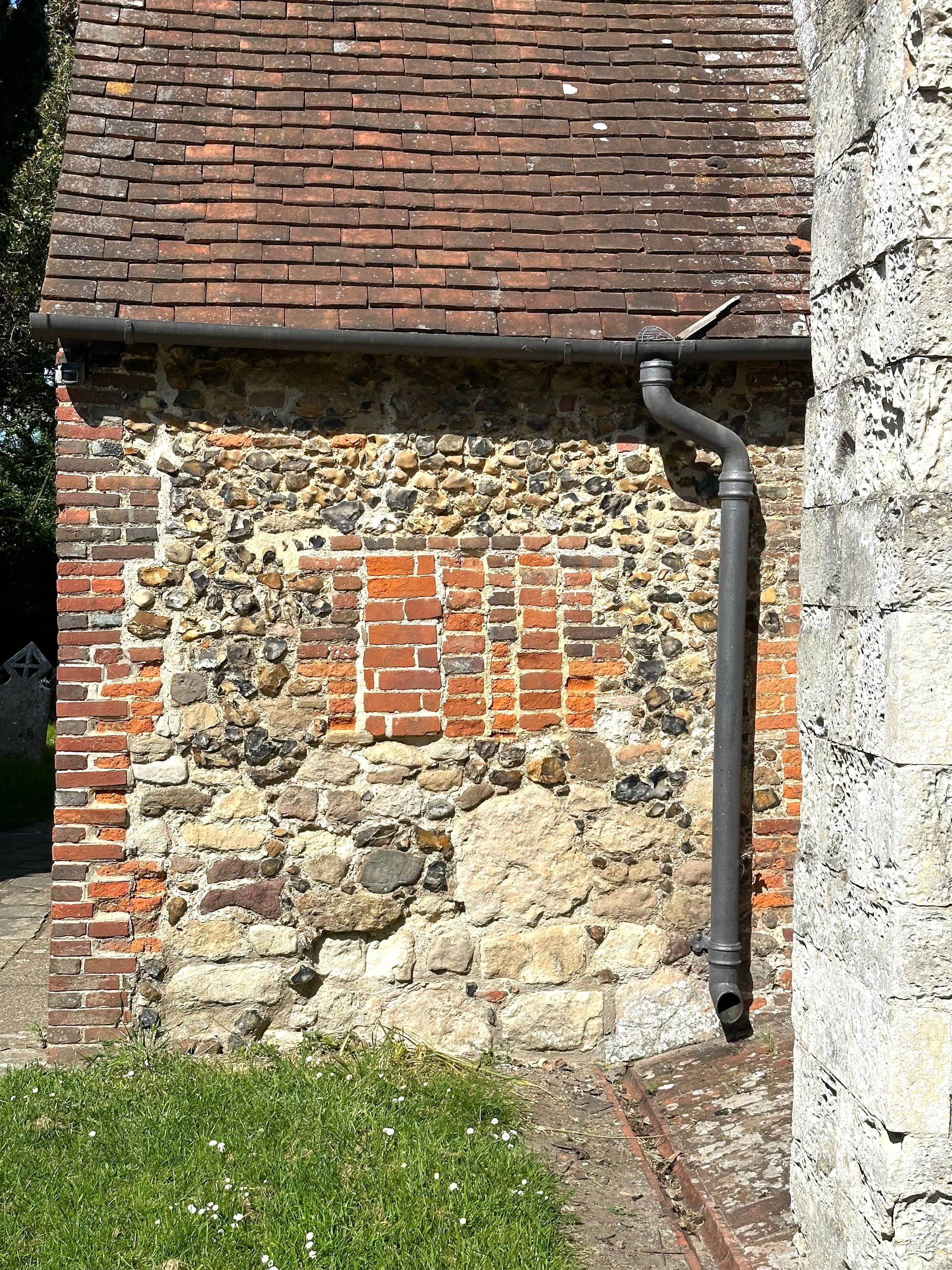 The church is built of Mixon stone (used by the Romans at Fishbourne), Top Chalk, Sarsen stone and Quarr stone rubble. The church is material witness to the pre-conquest world and the ensuing embossing of the post-conquest world of the Normans.
