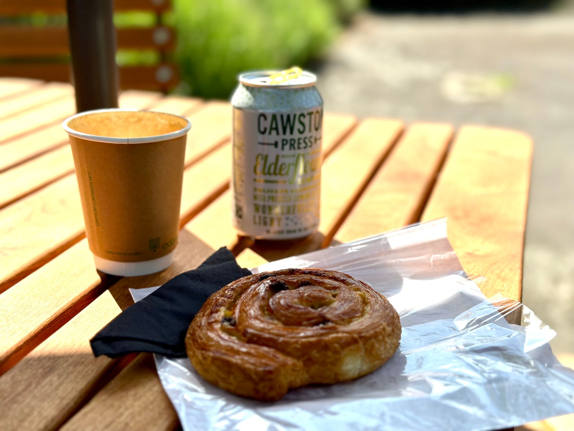 I had breakfast at the Pop In: a coffee, Danish and Elderflower press. Highly recommended.