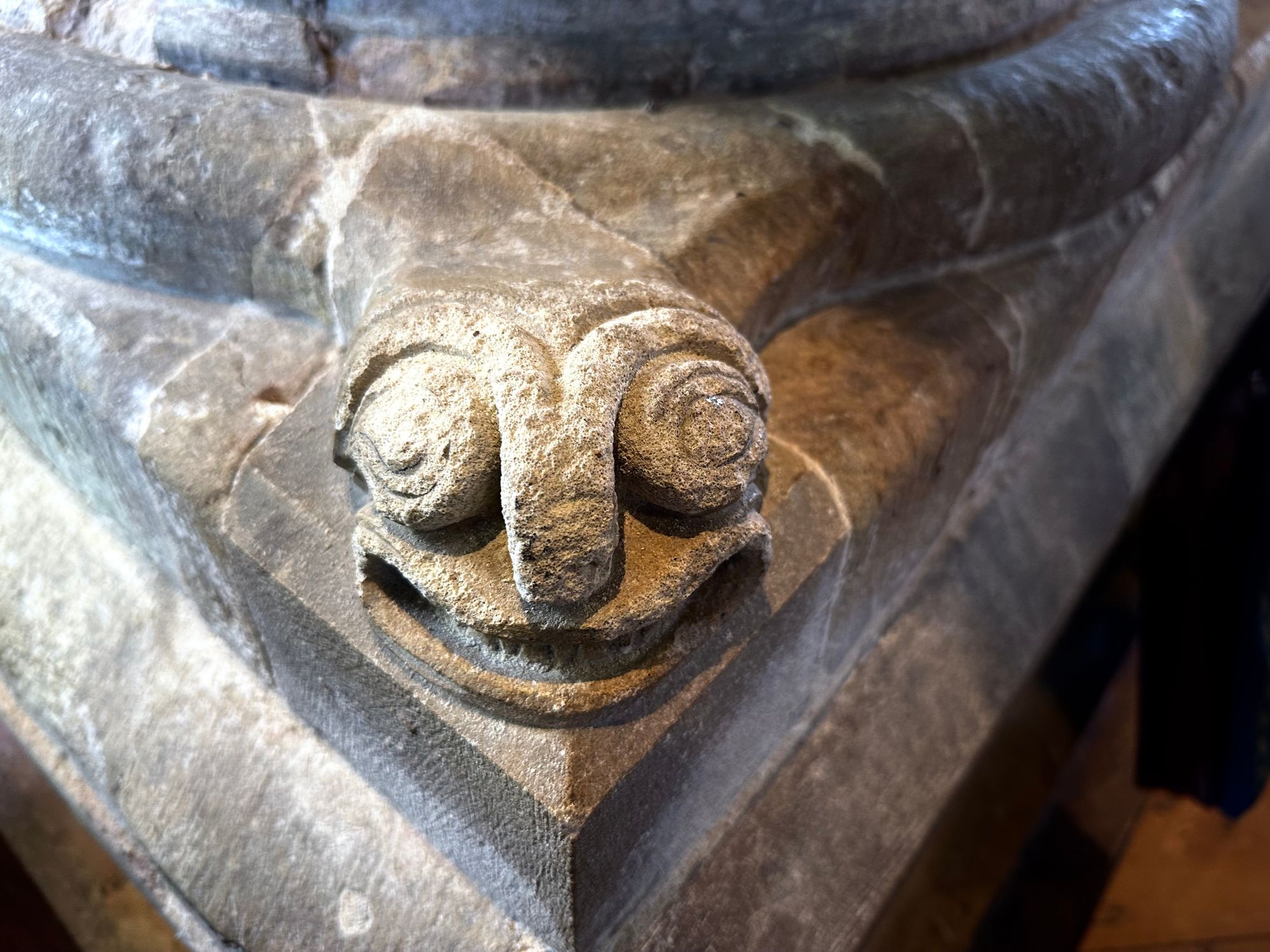 Is it me, or do the grimacing faces on the base of a Norman column in the north aisle have a smugness about them?