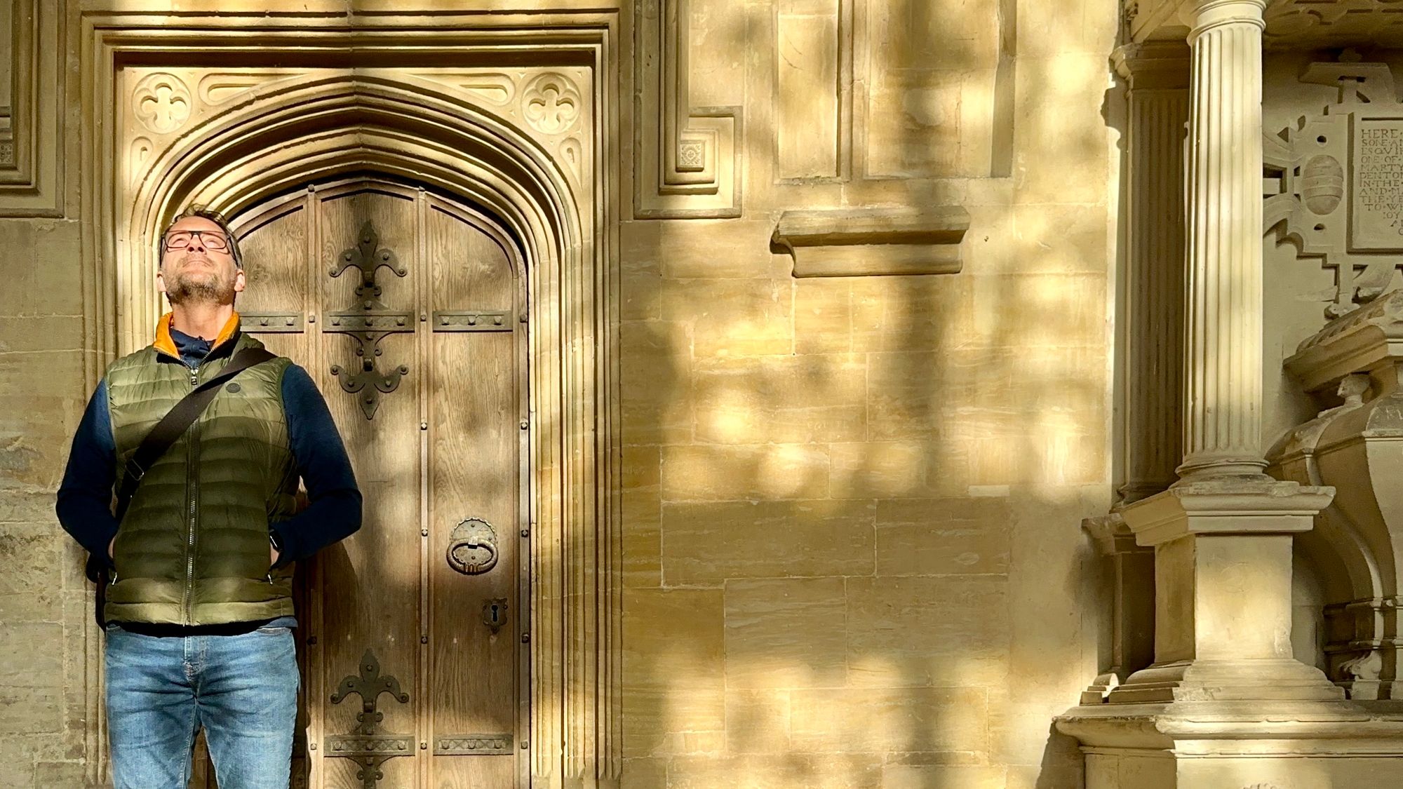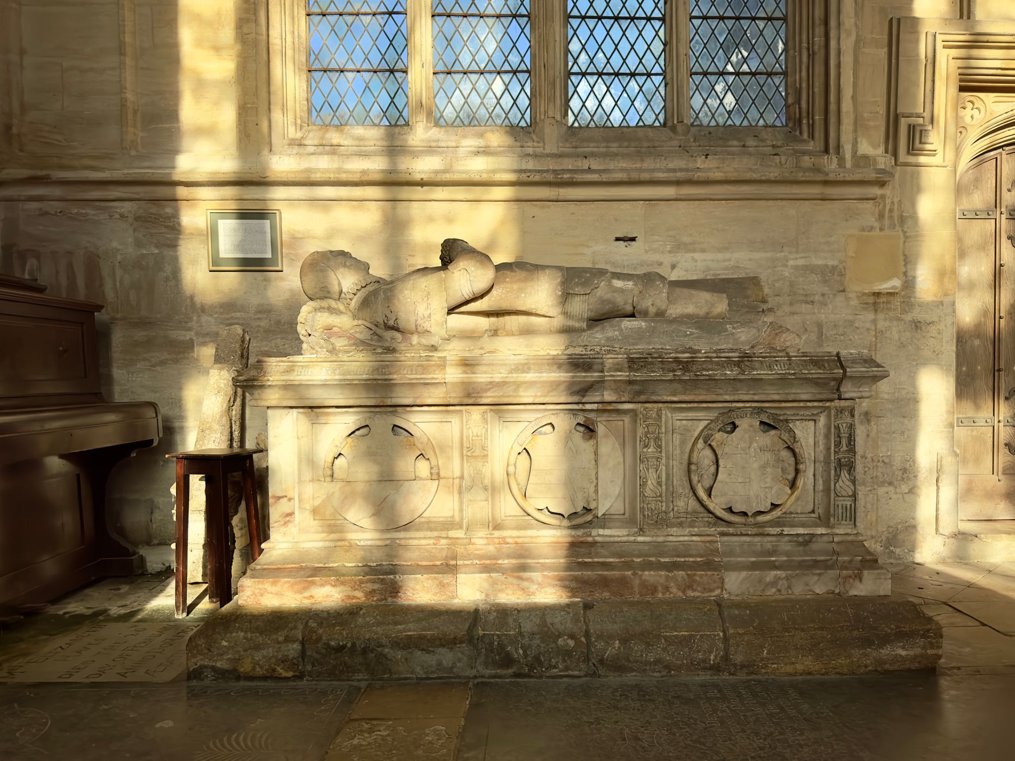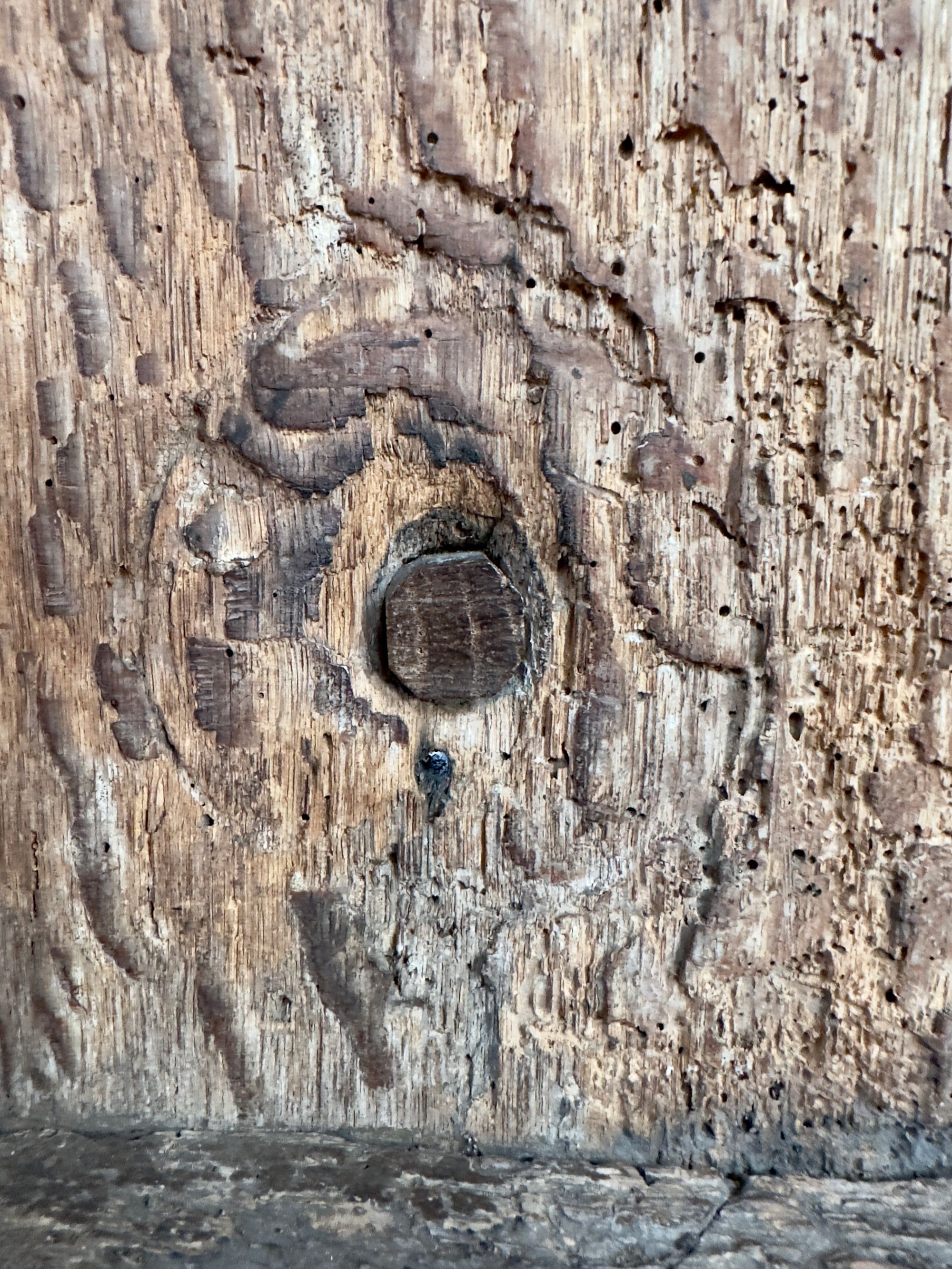 I think I see a mark on the wall behind the effigy, but then itβs shrouded in shade, until the tree shadows move away, and there it is again.