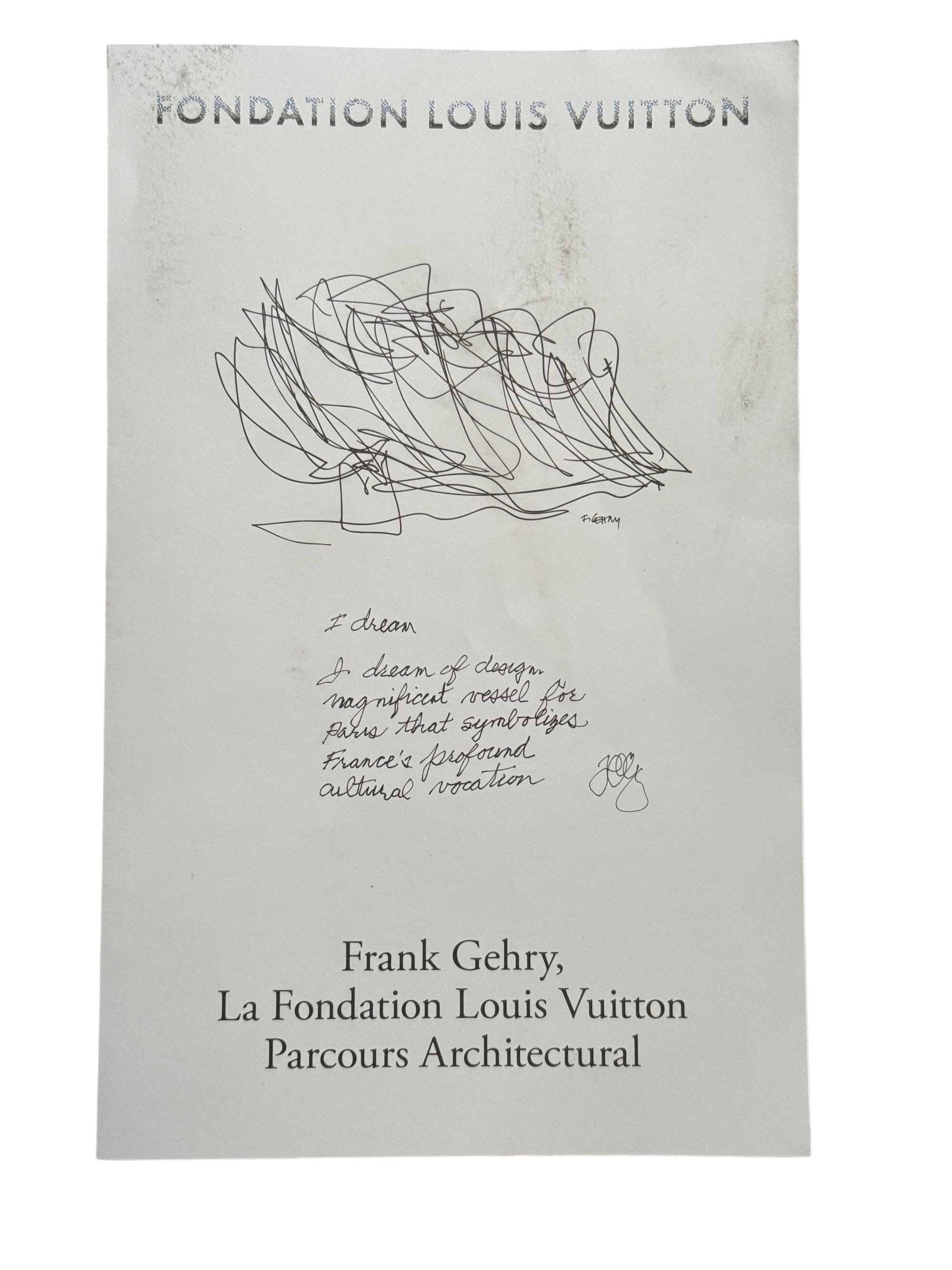 The Fondation Louis Vuitton leaflet on the Gehry building.