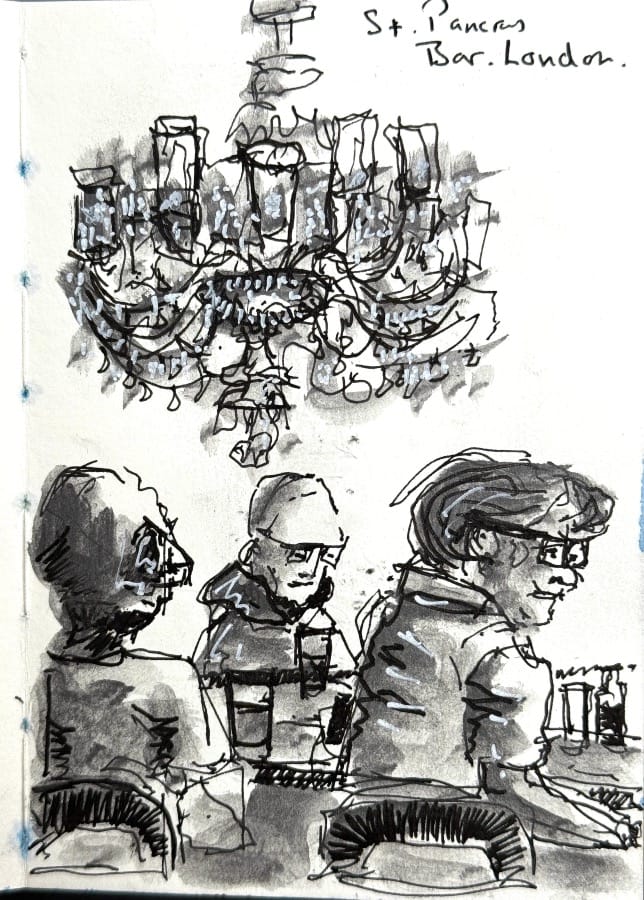 On my way back, whilst waiting for the Eurostar departure, I felt a touch overwhelmed by the crowds - so I sat outside the taxi rank and sketched whatever was in front of me.