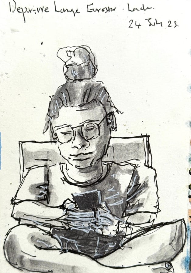 I'm so glad I took the Pith pocket book with me - because it allowed me to capture moments whilst on the go. I used the concertina book when I had a bit more time to sketch. They were often completed within 5 to 10 minutes - with me- precariously hiding behind my bag perched upon my knee to escape detection.