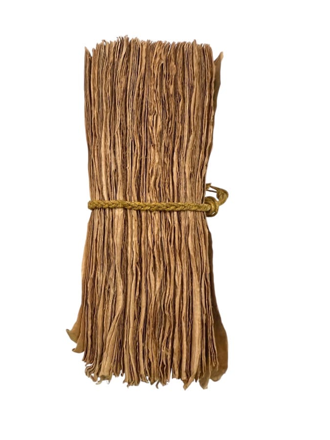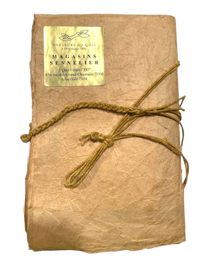 This feels quite 'sacred'. The paper is handmade in Nepal from a renewable source. The cotton string is braided in macramΓ© - a skill Nepalese use when making traditional carpets. The paper is infused with tea - and it smells divine - although one friend mockingly asked me if I was going to roll it up and smoke it...