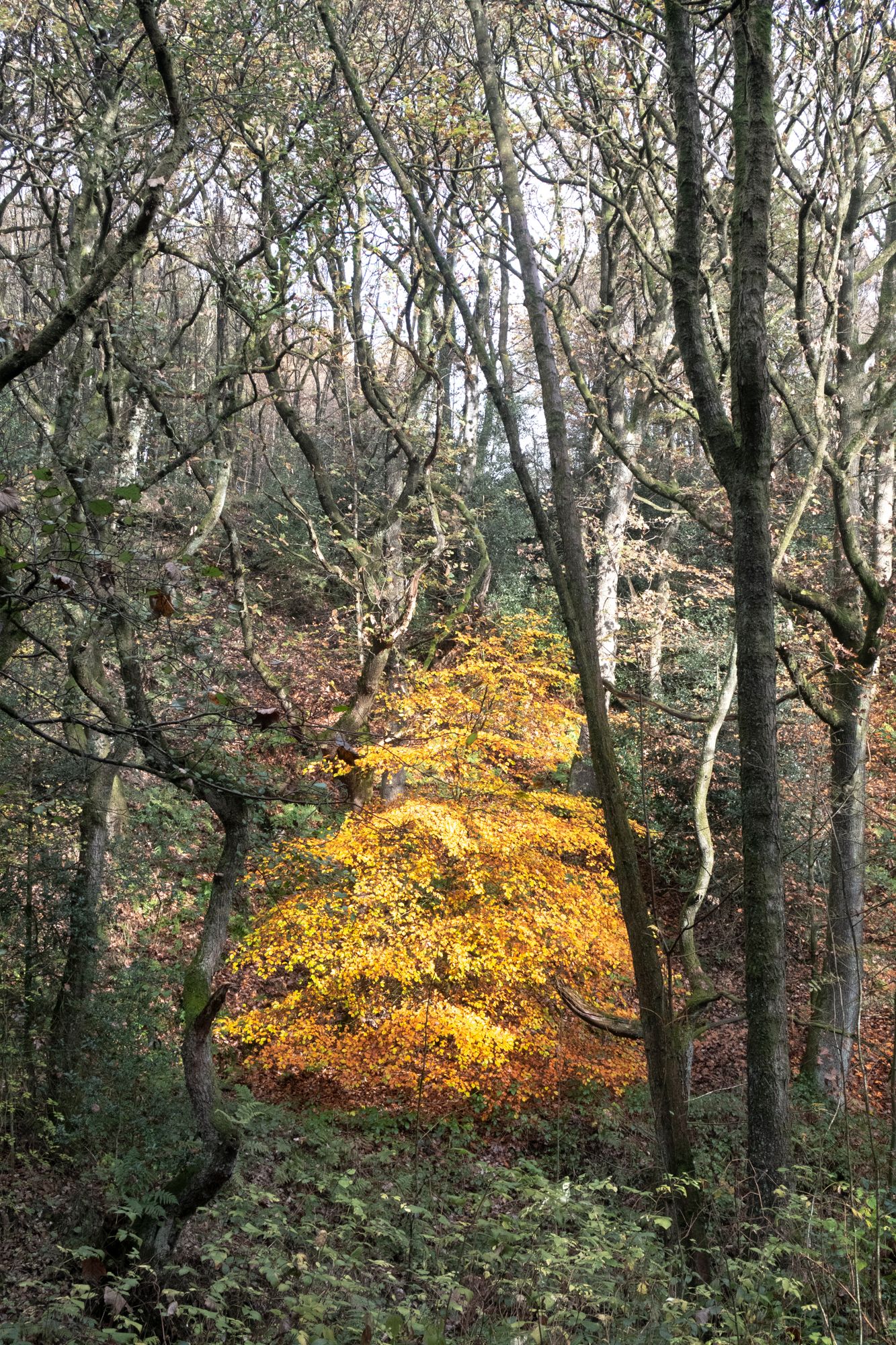 I had an old tea-stained map, but it didn’t correspond with the fifty years encroachment of wild wood since, and it wasn’t long before I found myself foundering in a bewilderment of woody limbs, set like lightning spurs against the day.