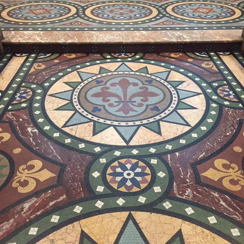 From the thumb-pressed patterns on that 3,000-year-old vessel, we moved to the heady geometry of the Minton mosaic floor inside the church – itself inspired by the Renaissance Cosmati pavement at Westminster Abbey. From there, we drifted to Venice via the Venetian Gothic and Palazzo-style buildings of Silver Street, before meeting the Georgians along St Mary’s Place, with their fine batwing fanlights.